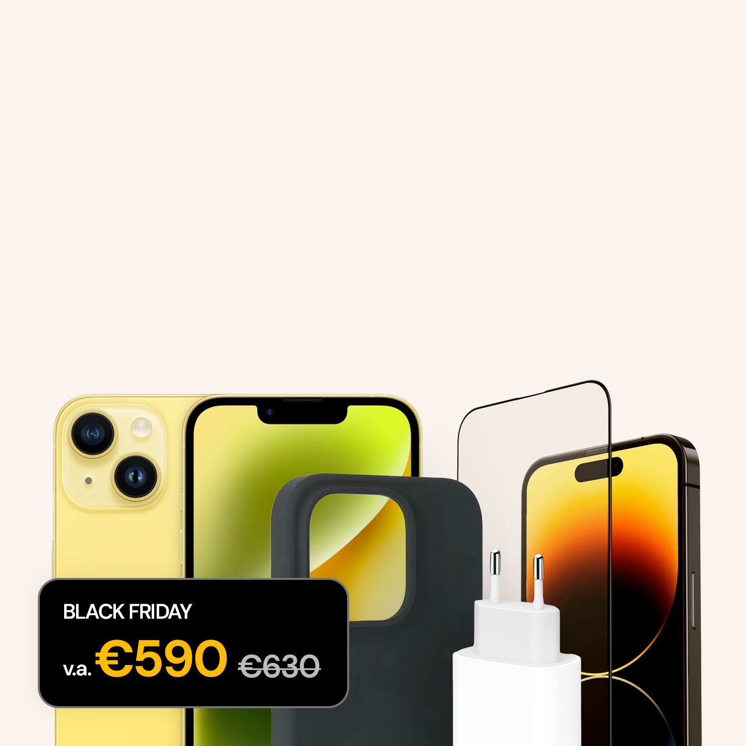 iPhone 14 + Case + Screenprotector + 20W oplader